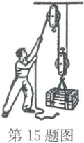 15. 如图所示,某工人使用滑轮组匀速向上运送建筑材料。为了提高滑轮组机械效率,可进行的操作是(
