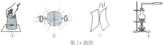14. 以下与气压相关的实验中,能够得出“空气流速越大,气压越小”结论的是(