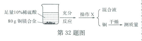 32. 铜镁合金(含镁1%~3%,其余为铜)具有优异的性能,在工业上有着广泛的应用。