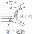 4. 1911 年,英国科学家卢瑟福用带正电的α粒子轰击金属箔,这就是著名的α粒子散射实验(如图所示)。该实验不能证明的是(