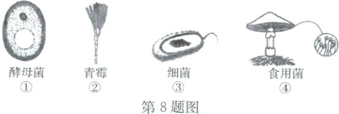 8. 微生物和人类关系十分密切。如图所示为某些微生物的结构图。下列说法不正确的是(