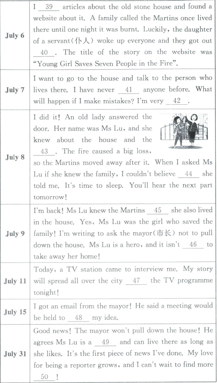 )42. A. sad B. angry C. nervous D. disappointed(