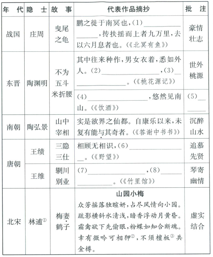 8. 补充完成【材料一】“隐士”整理表。(8 分)