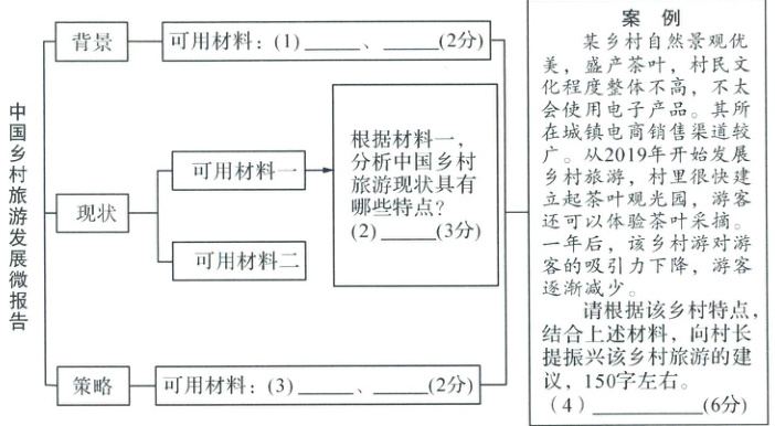 班级开展“中国乡村旅游”调研活动,小组搜集到以下材料,请你参与活动。(13 分)