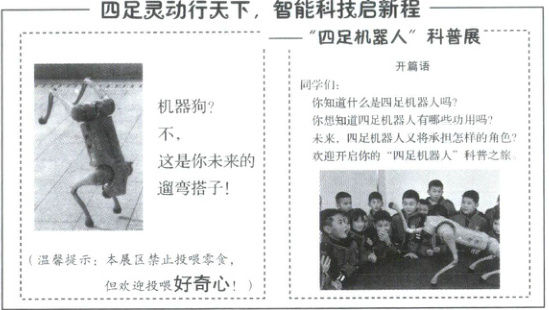 科创小组准备制作一组“四足机器人”科普展板,提升同学们的科学素养。请你阅读以下材料,参与制作。