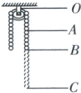 解:如图所示,开始下落时链条重心在$A$处,离开滑轮时重心位置在$B$处,即重心下降了$h=0.5m$。所以重力做功$W_G=mgh=10×10×0.5J=50J$。易知重力势能减少50J。