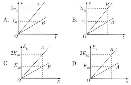1 如图所示,足够长的木板A置于足够长的光滑斜面上,物块B置于A中央,A的质量是B的质量的2倍,A、B的接触面粗糙。现将A、B一起由静止释放,A、B的速度大小v、动能Eₖ与时间t或位移x的关系图像正确的是( )