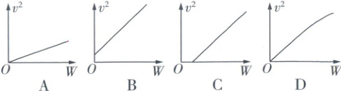 (4)假设已经完全消除了摩擦力和其他阻力的影响,若砂桶和桶中砂的总质量不满足远小于小车的质量,且$W = mgh$,则从理论上分析,下列各图能正确反映$v^{2}-W$关系的是____;此时若$v^{2}-W$图线直线部分的斜率为$k$,则从理论上分析,可知小车的质量$M =$____。