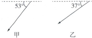 2 (多选)投壶是古代士大夫所做的一种投射游戏。《礼记传》中提到:“投壶,射之细也。燕饮有射以乐宾,以习容而讲艺也。”如图,若甲、乙两人站在距壶相同水平距离处沿水平方向各投出一支完全相同的箭,箭尖插入同一个壶中时与水平面的夹角分别为53°和37°,忽略空气阻力、箭长、壶的高度、壶口大小等因素的影响,下列说法正确的是( )