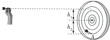 (2)飞镖离手后做平抛运动,竖直方向有$h_{1} + h_{2} = \frac{1}{2}gt^{2}$,解得$h_{2} = 0.35m$