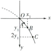 7 如图所示是竖直平面内小球做平抛运动时频闪照片的一部分,其中O、A、B、C是四个连续的频闪位置。取O点为坐标原点,建立直角坐标系,经测量得到B点的坐标为(x₁,y₁),C点的纵坐标为2y₁,重力加速度为g。求: