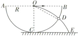D.小球由 $ D $ 到 $ E $ 运动的时间为 $ \sqrt{\dfrac{R}{g}} $