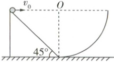 8 [2025 西北大学附中月考]如图所示,$ a $、$ b $ 两个小球均从一个倾角为 $ 45^{\circ} $ 的斜面顶端以不同的初速度向右水平抛出,斜面与一个 $ \dfrac{1}{4} $ 圆弧对接,斜面高度与圆弧半径相等,斜面的底端在圆心 $ O $ 的正下方。则下列说法正确的是 ( )