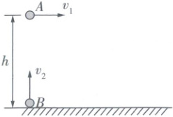3 如图所示,小球 $ B $ 在小球 $ A $ 的正下方,两球相距 $ h $,将小球 $ A $ 以速率 $ v_1 $ 水平向右抛出,同时将小球 $ B $ 以速率 $ v_2 $ 竖直向上抛出,不考虑两球的大小及空气阻力,则两球在落地前的最短距离为( )