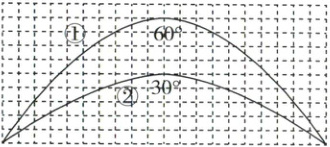 3 运动员在同一位置分别沿与水平地面成30°和60°角的方向踢出球,球两次落在同一地点,运动轨迹如图所示,不计空气阻力,则球( )