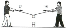 1 [2025黑龙江物理·6,4分]如图,趣味运动会的“聚力建高塔”活动中,两长度相等的细绳一端系在同一塔块上,两名同学分别握住绳的另一端,保持手在同一水平面以相同速率v相向运动。为使塔块沿竖直方向匀速下落,则v( )