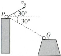 13 (多选)[2024山东物理·12,4分]如图所示,工程队向峡谷对岸平台抛射重物,初速度v0大小为20m/s,与水平方向的夹角为30°,抛出点P和落点Q的连线与水平方向的夹角为30°,重力加速度大小取10m/s²,忽略空气阻力。重物在此运动过程中,下列说法正确的是( )