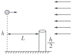 3 [2025江苏无锡期末考试]为了研究空气动力学问题,如图所示,某人将质量为$m$的小球从距地面高$h$处以一定初速度水平抛出,在距抛出点水平距离$L$处,有一根管口比小球直径略大的竖直细管,上管口距地面的高度为$\frac{h}{2}$。小球在水平方向上受恒定风力作用,在竖直方向上阻力不计,且小球恰能无碰撞地穿过细管,重力加速度为$g$,则下列说法正确的是( )