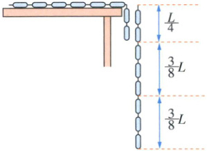 如图所示,长为 $L$ 的均匀链条放在光滑水平桌面上,且使其长度的 $\frac{1}{4}$ 垂在桌边,松手后链条从静止开始沿桌边下滑,则链条滑至刚离开桌边时重力势能的减少量为