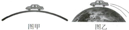 10 [2025内蒙古巴彦淖尔一中月考]如图甲,汽车通过半径为r的拱形桥,在最高点处速度达到v时,驾驶员对座椅的压力恰好为零;若把地球看成一个巨大的“拱形桥”,当另一辆“汽车”速度达到某一值时,“驾驶员”对座椅的压力也恰好为零,如图乙。已知地球半径为R,则图乙中的“汽车”速度大小为
