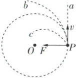 12 (多选)[2025山东济宁一中月考]如图所示,一个小球在合力F作用下以速率v在水平面内做匀速圆周运动。若从某时刻起小球的运动情况发生了变化,对于引起小球沿a、b、c三种轨迹运动的原因说法正确的是