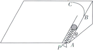 6 如图所示是一儿童游戏机的简化示意图。游戏面板与水平面所成夹角θ=30°,半径为R=0.8m的四分之一圆弧轨道BC与直管道AB相切于B点,C点为圆弧轨道最高点(切线水平),通过手柄P控制可发射速度不同的小球(可视为质点)。已知C点到水平面的高度h=1.25m,重力加速度g取10m/s²,不计一切阻力。