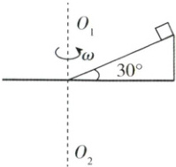 3 如图所示,倾角 $ \theta = 30° $ 的斜面固定在可以绕竖直轴转动的水平转台上,斜面最低点在转轴 $ O_1O_2 $ 上。将质量为 $ m $ 的小物块(可视为质点)放置于斜面的顶端,斜面底面长为 $ L $,小物块始终和斜面相对静止。已知小物块与斜面之间的动摩擦因数为 $ \frac{\sqrt{3}}{4} $,重力加速度为 $ g $,最大静摩擦力等于滑动摩擦力。
