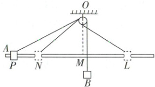 3 [2025 湖北荆州中学月考]如图所示,水平光滑长杆上套有物块 $ A $,一细线一端跨过固定在天花板上 $ O $ 点的大小可以忽略的轻质定滑轮连接 $ A $,另一端悬挂物块 $ B $。开始时 $ A $ 位于 $ P $ 点,$ M $ 为 $ O $ 点正下方杆上一点,现将 $ A $、$ B $ 由静止释放,忽略一切阻力。当 $ A $ 通过杆上 $ N $ 点时,细线与水平面夹角为 $ 37^{\circ} $,$ L $ 与 $ N $ 关于 $ M $ 对称,已知 $ \sin 37^{\circ} = 0.6 $,$ \cos 37^{\circ} = 0.8 $,关于释放后的过程,下列说法正确的是( )