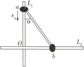 4 [2025 河北保定质量检测]如图所示,竖直平面内固定两根足够长的细杆 $ L_1 $、$ L_2 $,两杆不接触,间距可忽略不计。两个小球 $ a $、$ b $ 均视为质点,$ a $ 球套在竖直杆 $ L_1 $ 上,$ b $ 球套在水平杆 $ L_2 $ 上,$ a $、$ b $ 通过铰链用刚性轻杆连接,当轻杆与竖直方向的夹角为 $ \alpha $ 时,小球 $ a $ 的速度大小为 $ v_a $,则此时小球 $ b $ 的速度大小为( )