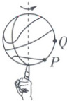1 [2024 吉林物理·2,4 分]“指尖转球”是花式篮球表演中常见的技巧。如图,当篮球在指尖上绕轴转动时,球面上 $ P $、$ Q $ 两点做圆周运动的( )