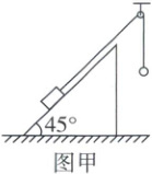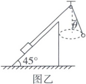 10 如图甲所示,倾角为45°的斜面置于粗糙的水平地面上,有一滑块通过轻绳绕过定滑轮与质量为m的小球相连(绳与斜面平行),滑块质量为2m,滑块恰好静止在粗糙的斜面上。在图乙中,让小球在水平面上做匀速圆周运动,轻绳与竖直方向的夹角为θ,且θ≤45°,此时滑块、斜面仍然处于静止状态,重力加速度为g,则以下说法正确的是( )