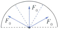 3 C 第一步:先把半圆环分成三等份,求出每一部分对小球的引力大小。设圆环三等分后的每一部分对小球的引力大小为$F_0$,由对称性可知,每一部分对小球的引力方向均在各自对应的圆心角的角平分线上,如图所示,则有$F = F_0 + 2F_0 \cos 60°$,解得$F_0 = \frac{F}{2}$。