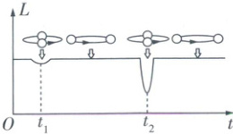 3 [2025浙江温州三模]“食双星”是特殊的双星系统,由两颗亮度不同的恒星组成,它们在相互引力作用下绕连线上某点做匀速圆周运动,且轨道平面与观测者视线方向几乎平行。由于两颗恒星相互遮挡,造成观测者观察到双星的亮度$L$发生周期性变化,如图所示。若较亮的恒星和较暗的恒星轨道半径分别为$r_{1}$和$r_{2}$($r_{1}$和$r_{2}$远小于该双星系统到观测者的距离)。下列说法正确的是( )