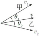 1 在水面上有甲、乙两个拖船用绳索沿两 向运动拖拉一艘大船,其示意图如图所示。已知甲、乙两船的运动方向分别沿两绳索,绳索始终保持水平,大船的运动方向与两绳索的夹角分别为$\theta_{1}$、$\theta_{2}$,设甲、乙两船的速度大小分别为$v_{1}$、$v_{2}$,大船速度大小为$v$,下面关系式正确的是 ( )