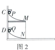(2)在图2中,同时断电后P、Q两个小球同时沿着斜槽滚下,观察到P、Q两个小球撞在一起,说明平抛运动在______方向上为______运动。