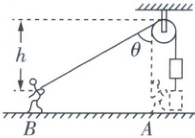 2 如图所示,某人用定滑轮提升质量为 $ m $ 的重物,人拉着绳从滑轮正下方的 $ A $ 处缓慢走到 $ B $ 处,此时绳与竖直方向成 $ \theta $ 角,$ A $、$ B $ 两处与滑轮竖直距离为 $ h $,重力加速度为 $ g $,不计绳的质量以及绳与滑轮间的摩擦。则此过程中人对重物所做的功 $ W $ 是 ( )