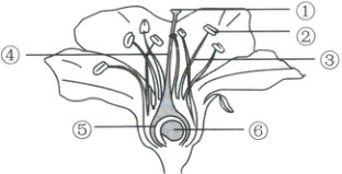 3. 下图是桃花的结构示意图,桃花传粉时产生花粉的部位是(
