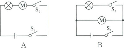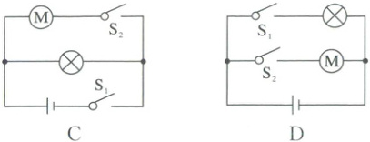 8. 某款玩具,闭合开关$S_{1}$,灯光亮起,玩具进入待机状态;拍手后触发声控开关$S_{2}$,玩具便能跳一会儿舞。下列电路中符合上述条件的是(