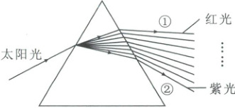 5. 如图表示太阳光经三棱镜折射的色散实验,图中①②分别表示红外线和紫外线所在区域。下列说法不正确的是(