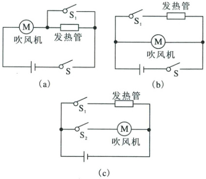 (2)b,因c中若只闭合S₁开关,吹风机未连入电路,无风