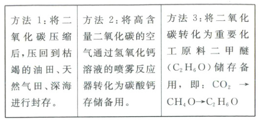 。(3)在上述实验后,小组成员查阅资料发现:实现碳中和,可以通过人工固碳、海洋固碳和生物固碳等途径,其中人工固碳的常见方法如下: