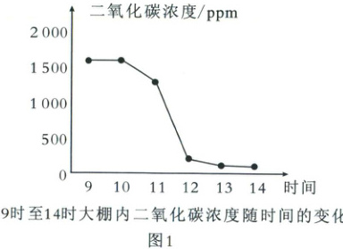【资料2】大棚种植黄瓜。智能管理前,棚内二氧化碳供应不足(如图1),黄瓜产量较低。科技工作者应用传感器监控棚内二氧化碳浓度、温度、水分等,及时补充适量的二氧化碳,并保持昼夜温差在15℃左右,有效提高黄瓜产量。
