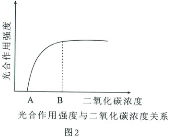 (填“多于”“少于”或“等于”)呼吸作用产生的二氧化碳,有机物逐渐积累。(3)分析图2,应监控大棚内二氧化碳浓度保持“适量”,原因是