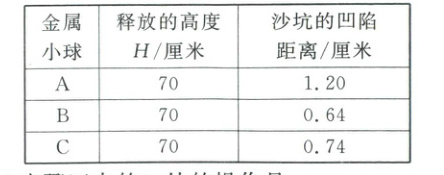 步骤四:?,更换小球,重复步骤三。多次实验并计算沙坑的凹陷距离如下表。