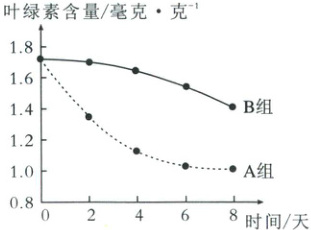 (3)相同时间内,A组叶绿素含量明显低于B组