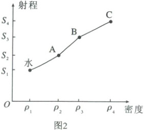24. (8分)学校科技节开展水火箭比赛,同学们通过查阅资料得知:水火箭射程与瓶内液体占总体积比例、瓶内气压和发射角度等因素有关。除上述因素外,为研究水火箭射程与瓶内液体质量的关系,某兴趣小组通过只改变液体的密度来改变其质量,并用图1装置和有关测量工具进行如下实验。
