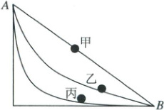 15. 将甲、乙、丙三个相同的小球,从光滑斜面的顶端$A$点同时静止滑下,如图所示。实验发现,乙小球第一个到达底部$B$点,丙小球第二个到达底部$B$点,甲小球第三个到达底部$B$点,不计空气阻力,下列关于小球通过底部时的速度,说法正确的是(