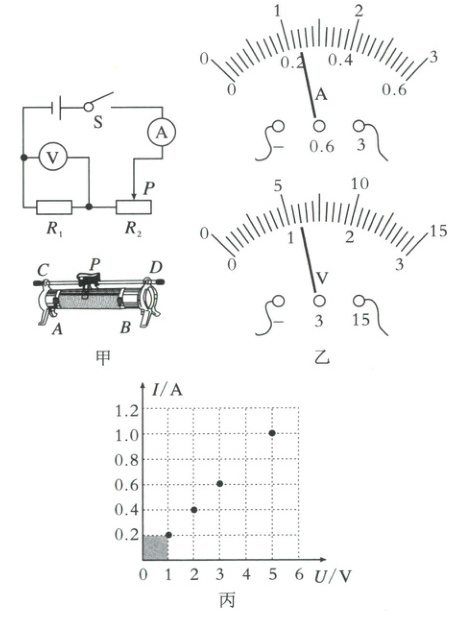 (1)闭合开关后,移动滑片$P$,发现两电表示数始终如图乙所示,原因可能是