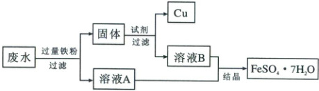 (2)某工厂的废水中含有大量的$FeSO_4$和较多的$CuSO_4$。为了减少污染并变废为宝,某实验小组设计了如图流程制备绿矾($FeSO_4·7H_2O$)并回收金属铜。