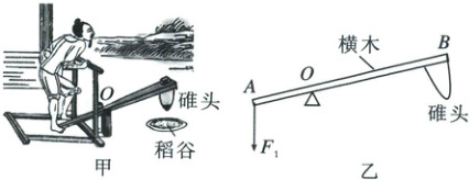 22.我国劳动人民在很早以前就将杠杆原理应用于日常生活。《天工开物》中记载的一种捣谷工具“春”(如图甲所示),便蕴含着杠杆原理,其原理示意图如图乙所示。